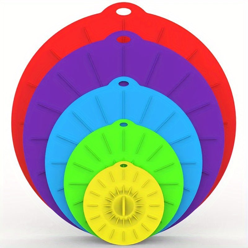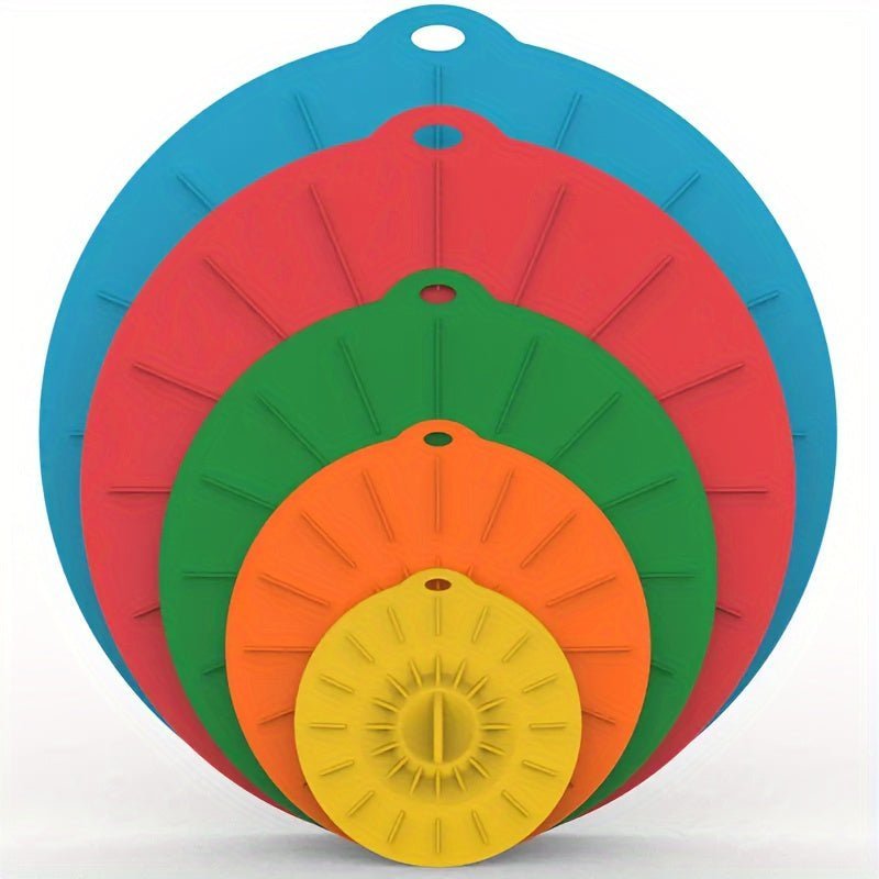 【MULTIPURPOSE VERSATILITY】Totally 5 Sizes- 4 inch. 6 inch. 8 inch. 10 inch and extra large 11.7nch. The sizes in between vary and they will fit almost anything!! Such as Pot. Pan. Dish. Plate.Bowls.Container.Coffee Cup Jar.Can and more. Great for Cooking and Baking .Also Perfectly and Safely use for Microwave. StoveTop. Oven. Fridge and Freezer Safe. Withstands temperatures from -104 degrees F to 450 degrees F.