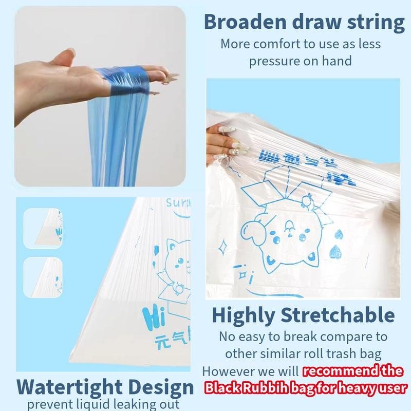 Simplify your cleaning routine with our large roll of drawstring trash bags! Designed for convenience, these durable, thickened bags are perfect for homes, offices, and outdoor events.